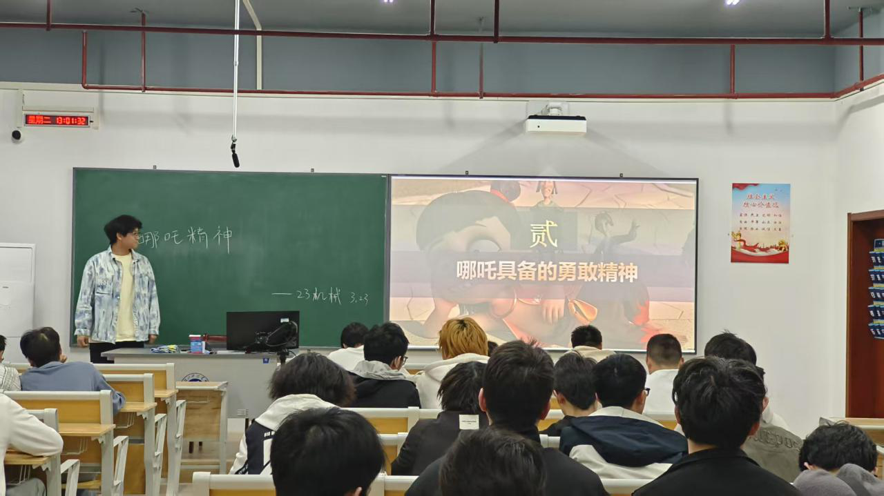 各班通过观影、讨论等丰富形式展开学习。《哪吒》系列电影中"我命由我不由天"的经典片段,引发了同学们对抗争精神的深刻思考。在讨论环节,同学们结合自身经历踊跃分享:有同学提出要以哪吒的攻坚精神面对学业难题;有同学强调要发扬团队协作精神,与伙伴们共同成长。