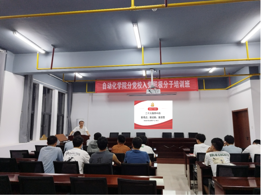 为全面深入学习贯彻党的二十大精神,推动公司掀起学习二十大精神的热潮,引导员工将思想和行动统一到党的二十大精神上来,4月25日,自动化公司党委副书记杨胜在实训楼902向入党积极分子宣讲《二十大报告中的新观点、新论断、新思想》。