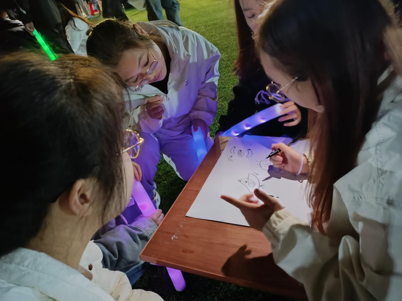活动的第二项为环环相扣。参赛选手们分成小组,用最短的时间将荧光圈传至终点。这场游戏激发了所有人的团队合作意识和奋力拼搏的精神,大家都尽情挥洒热情,全身心投入到比赛中,将活动气氛推向了高潮。