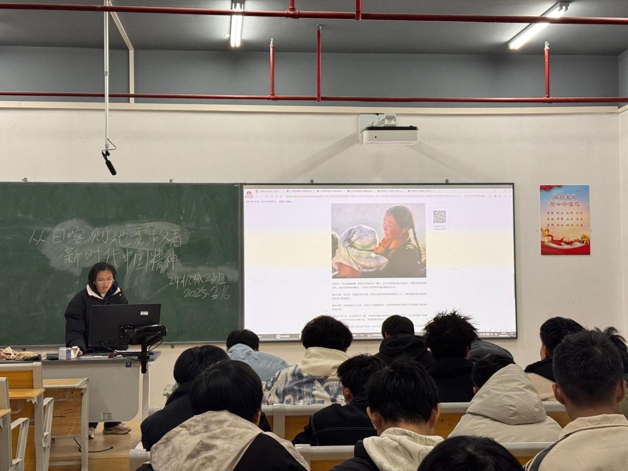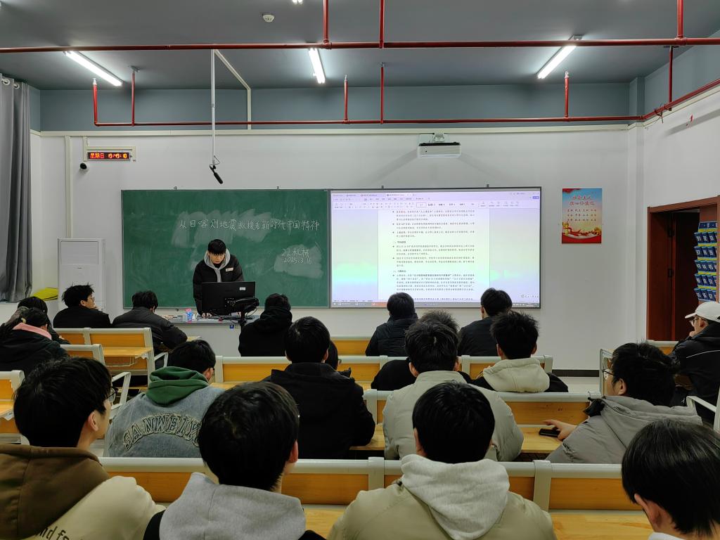 班会上,负责人带领同学们深入回顾了抗震救灾中的温情瞬间与科技力量彰显的关键作用。通过案例研讨与情景再现,同学们既直观感受到举国体制下应急响应的效能优势,更深刻理解了新时代中国精神"人民至上、生命至上"的核心要义。