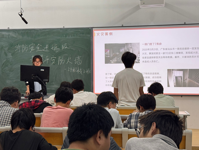 班会伊始,各班班会负责人借助精心准备的PPT与视频资料,以触目惊心的火灾事故案例为切入点,深入浅出地剖析火灾发生的常见原因,如电气设备使用不当、易燃物品管理疏忽等。他们详细讲解了火灾预防的关键要点,包括规范用电、保持消防通道畅通等。