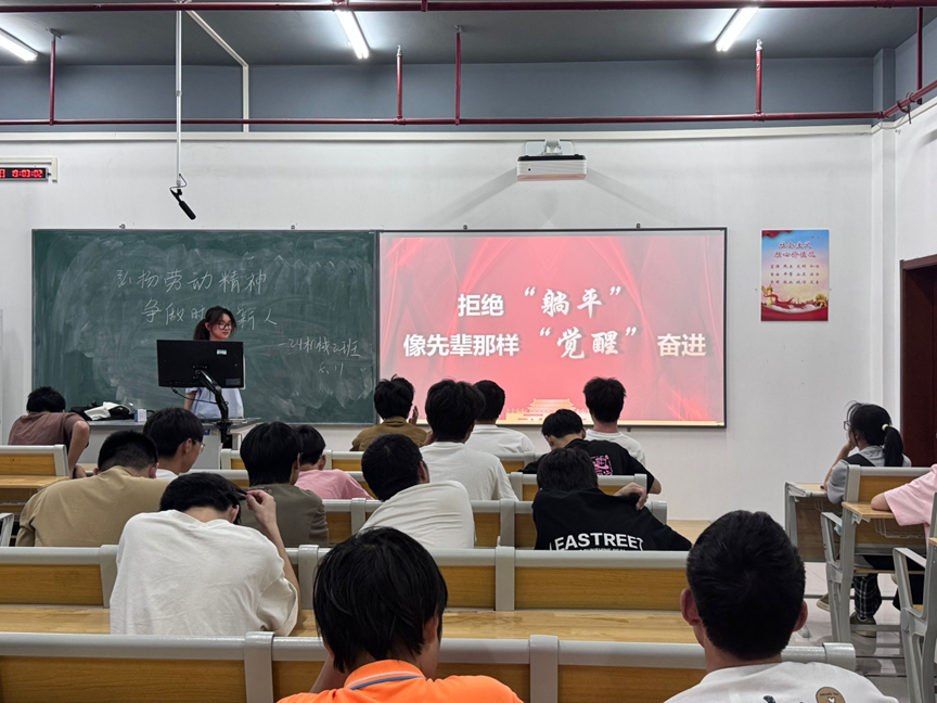 班会伊始,各班班长以生动案例深入阐述劳动精神的内涵,强调劳动不仅是创造物质财富的手段,更是个人成长与社会进步的基石。随后,班长们深入解读了习近平总书记关于劳动精神的重要讲话,引导同学们思考劳动在新时代的价值与意义,鼓励大家摒弃 “躺平” 心态,以先辈为榜样,在奋斗中 “觉醒”,在实践中奋进。