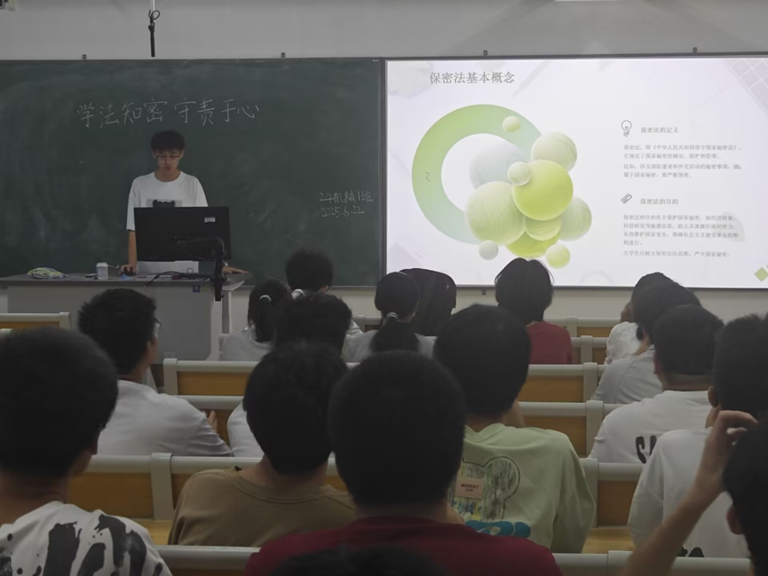 此外,班会还围绕学习、生活、实践等场景,向同学们发出“保密行动倡议”,如课堂资料不随意上传云端、实习中严守企业保密条款等,并现场演示了文件加密等实用保密技能。