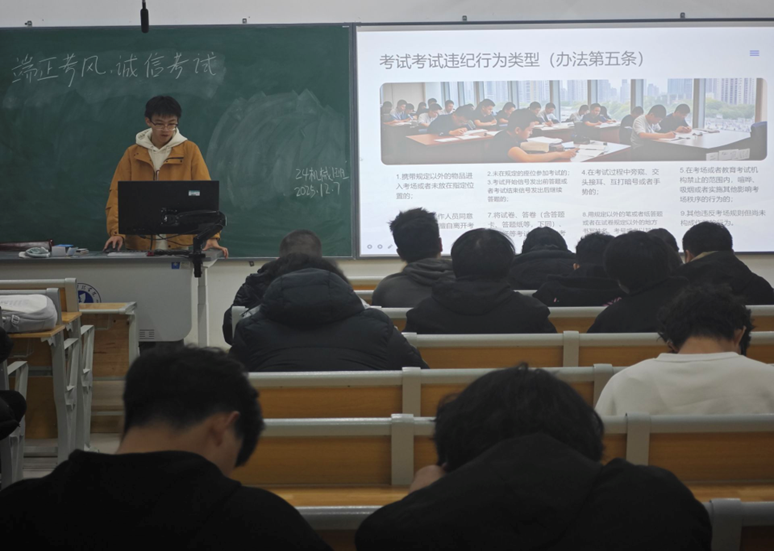 班会结合最高人民法院发布的考试作弊犯罪典型案例及校级处分实例开展警示教育,引导员工以案为鉴,深刻反思。同学们一致认识到,诚信不仅是考试的基本准则,更是立身处世的重要品质。