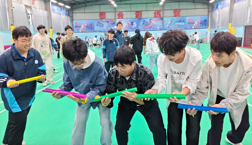 与传统竞技运动会不同,本次活动的项目设计别出心裁,着重强调团队协作与沟通理解。其中,“珠行千里”项目尤为考验团队的默契与耐心。队员们需要利用手中的U型槽,连接成一条顺畅的通道,共同将一颗小球运送到终点。任何一次衔接的失误都可能导致前功尽弃。活动现场,同学们全神贯注,互相提醒,通过一次次的眼神交流和短促指令,不断调整节奏与位置。当小球最终安全落入终点杯时,成功的喜悦与合作的成就感在每个队员脸上绽放。