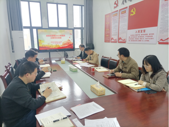 4月27日下午,自动化公司党委教工党支部在betway西汉姆联平台会议室开展四月份主题党日活动。自动化公司党委教工党支部书记冯锦平同志主持会议,全体教工党员参加会议。