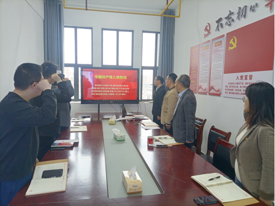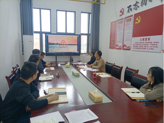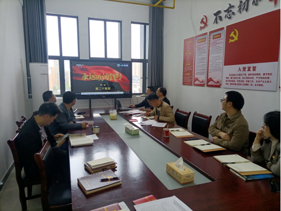 在交纳党费、唱国歌、重温入党誓词、诵读党章后,党委书记周国鹏同志领学学习贯彻习近平新时代中国特色社会主义思想主题教育工作会议精神;党委副书记杨胜同志领学习近平总书记在二十届中共中央政治局第四次集体学习的重要讲话精神;王可畏同志领学湖北省组织部长会议精神、咸宁市组织部长会议精神;支部书记冯锦平同志领学王蒙徽在湖北省科技创新大会上的讲话精神。
