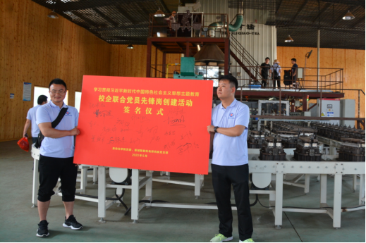 最后,全体成员来到了湖北赤壁赵李桥茶业有限公司,自动化公司党委书记周国鹏带领全体党员实地参观砖茶生产线,并介绍了研究院服务青砖茶产业的研发工作情况,大家纷纷表示要以砖茶生产线研发为契机,大力发挥党员先锋模范作用,结合“一下三民”和学习贯彻习近平新时代中国特色社会主义思想主题教育,开展党员先锋岗创建活动,为企业解决急难愁盼的事,为咸宁市高质量发展贡献力量。所有党员在签名仪式上郑重地签下自己的名字。